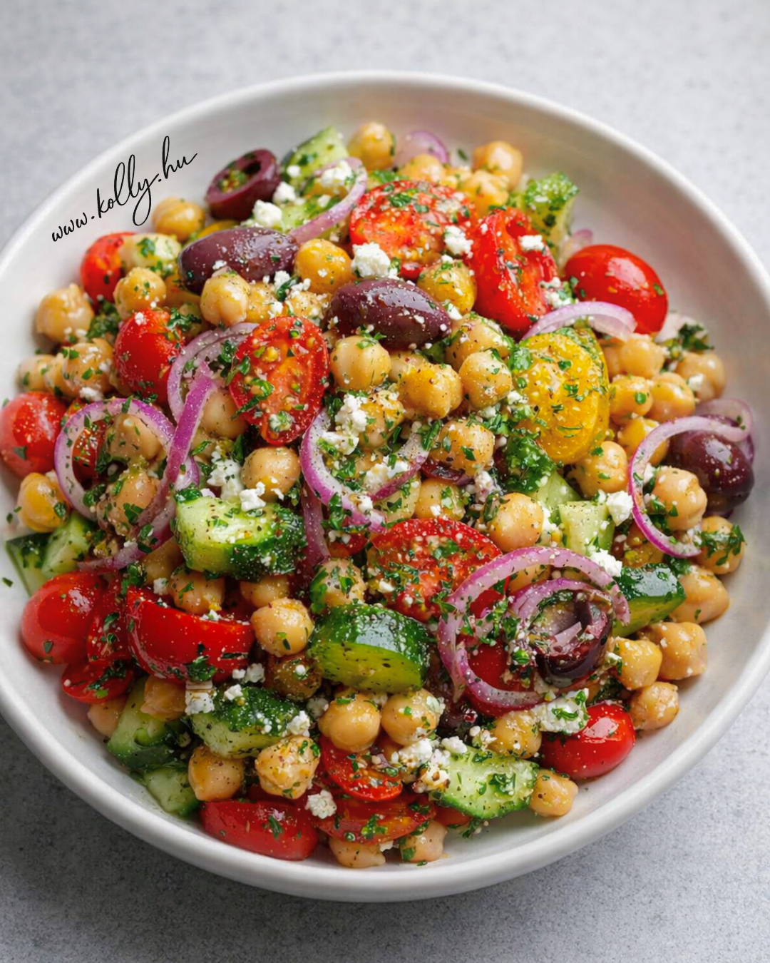 Ez a saláta fehérjedús, rostban gazdag és kifejezetten laktató, mégis friss és könnyed. Hüvelyesek, friss zöldségek és feta sajt kombinációja teszi ideálissá könnyű ebédnek vagy vacsorának.