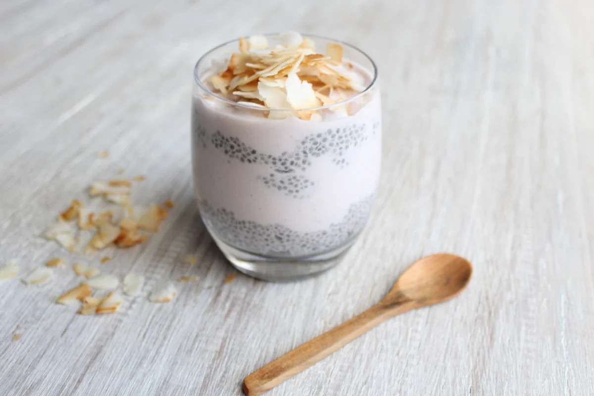 Alsó réteg: 75 g joghurtot keverj össze a chia maggal és az édesítőszer felével. Pihentesd 15-20 percig, hogy a chia mag megduzzadjon.