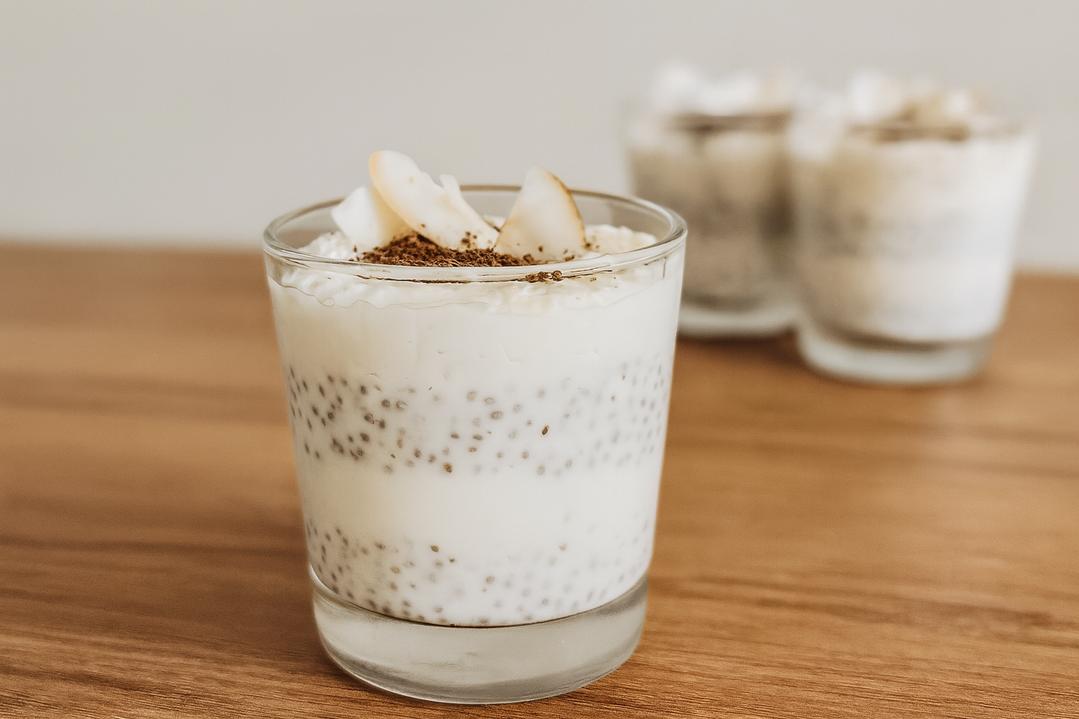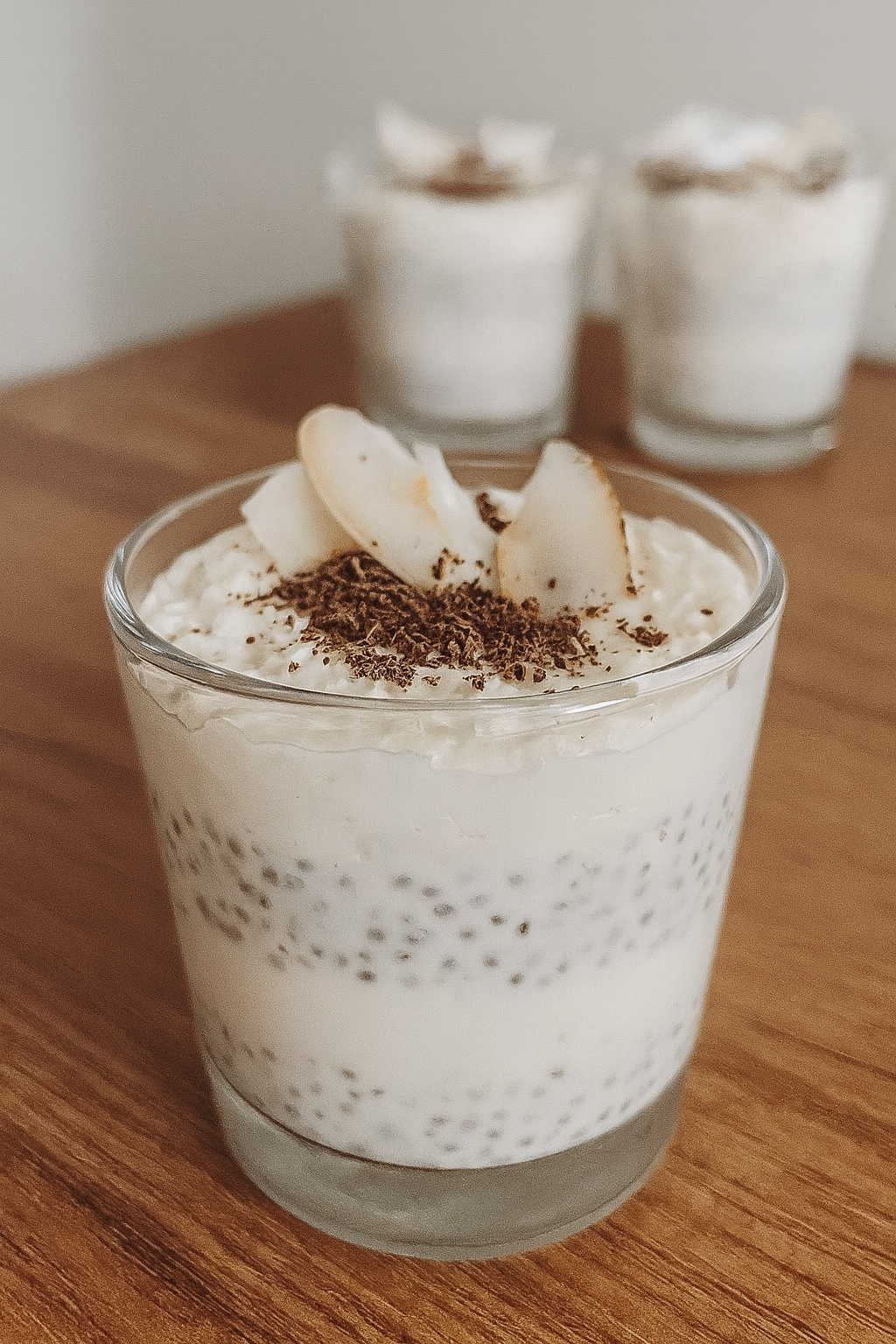 Díszítés: A tetejére szórj reszelt étcsokoládét, végül tegyél pár kókuszchipset.