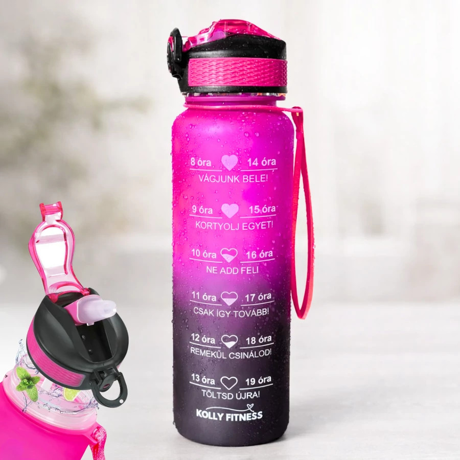 Maradj hidratált, maradj motivált! Ez az 1 literes kulacs segít, hogy ne felejtsd el a napi minimum 2 liter vízfogyasztást, ami elengedhetetlen az egészséged megőrzéséhez. A kulacson található motiváló üzenetek és időbeosztás végigvezet a napodon, hogy fokozatosan elérd a célodat.